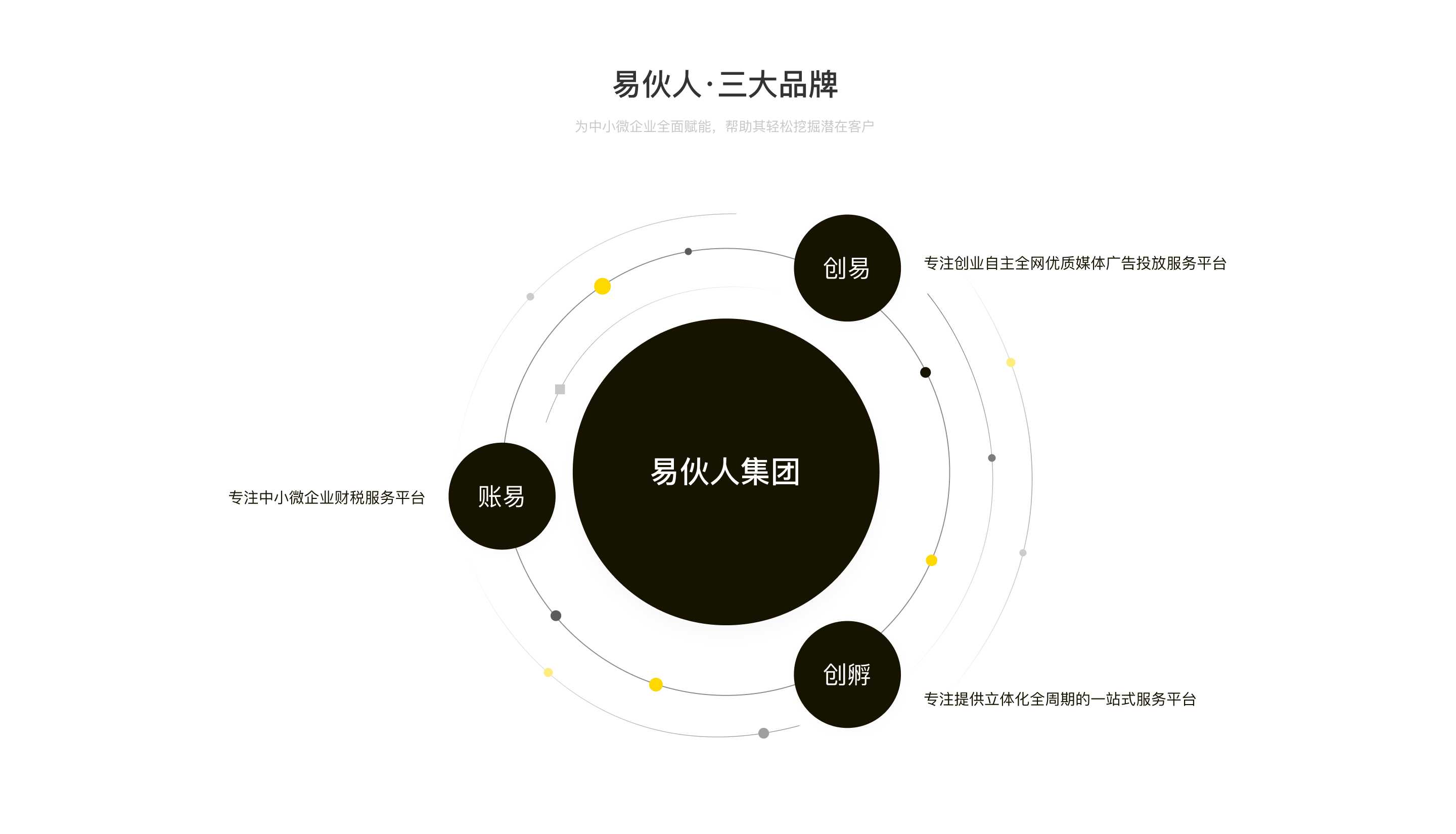 集團旗下三?業(yè)務(wù)品牌:創(chuàng)易、賬易、創(chuàng)孵,整體業(yè)務(wù)涵蓋互聯(lián)??告、?商財稅、企業(yè)云服務(wù)、IT研發(fā)、創(chuàng)業(yè)企服、項目投資等主流板塊,集團總部位于廣西南寧市,業(yè)務(wù)覆蓋地域桂、瓊、黔、陜、青、遼等地